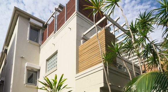 This project was a conversion of an existing duplex into 5 boutique apartment units of 1, 2 and 3 bedrooms. It was designed and built about 8 years ago with rear yard extensively landscaped with palm trees to minimise traffic noise off Falcon St. Internally, the units are fitted with blackbutt timber floor and quality appliances. There is a large rear balcony to the 2 rear units to allow for private open space.